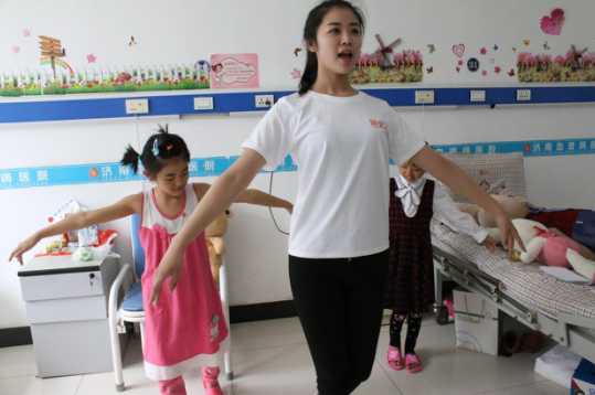 有的小患者喜欢跳舞,我们济南血液病医院特意联系了舞蹈艺术导师,完成她们的舞蹈梦。