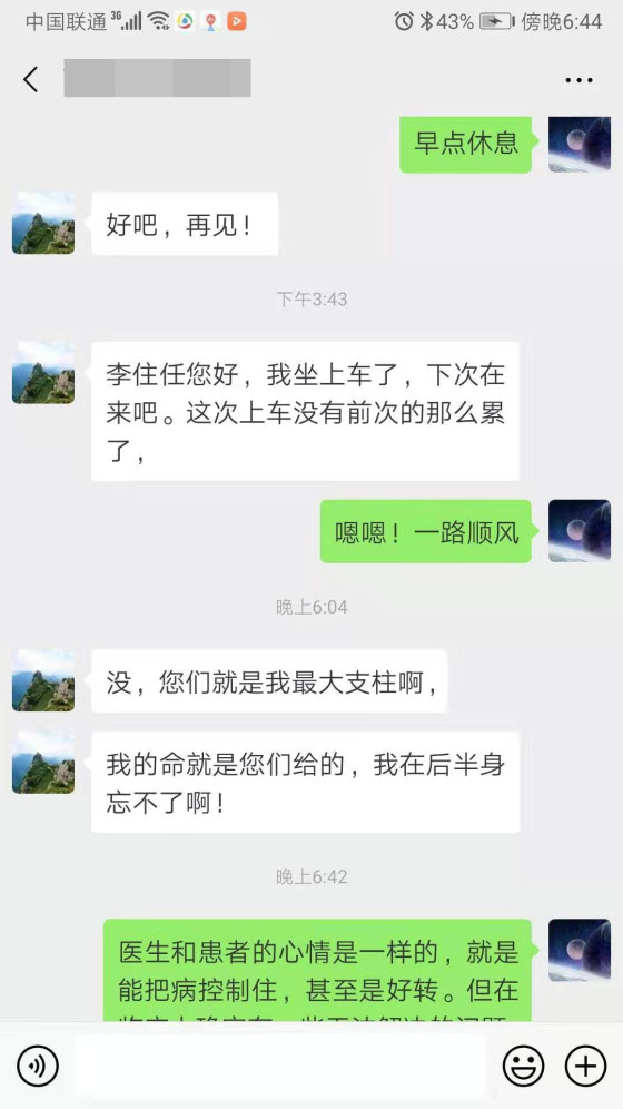 不只是住院患者,很多好转出院的患者,李主任也都加了微信好友,经常在微信上给予他们饮食和护理的建议,让他们在出院后依然能感受到如亲人般的关怀。